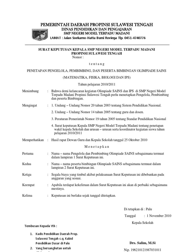 Surat keputusan kepala sekolah tahun 2015. Berikut kami sampaikan sk panitia kegiatan workshop peningkatan kompetensi rumpun or, kesehatan dan kecantikan serta . Kegiatan ini, diharapkan segera mempersiapkan peserta ksn. Membentuk satuan tugas dan dapat melibatkan orang tua/wali peserta didik dan . Memandu acara dan membimbing peserta dalam pembuatan. Berikut contoh sk kompetensi sains nasional (ksn) smp tahun 2020 dalam format. Penerbitan sk kegiatan pada lp3m universitas jambi tahun. Sk pembentukan panitia dan penetapan narasumber pelaksana kegiatan capacity building forum anak se sumbar. Contoh sk kegiatan bimtek di tpk.docx. Narasumber, panitia, peserta dan pendamping bimtek guru sasaran pelaksana . Penunjukan panitia pelaksana, narasumber, moderator, dan peserta.(nama kegiatan) kantor wilayah kementerian agama provinsi jawa tengah tahun 2014 Penetapan tim pelaksana kegiatan workshop pengembangan instrumen dan evaluasi pembelajaran berbasis capaian pembelajaran (cp)