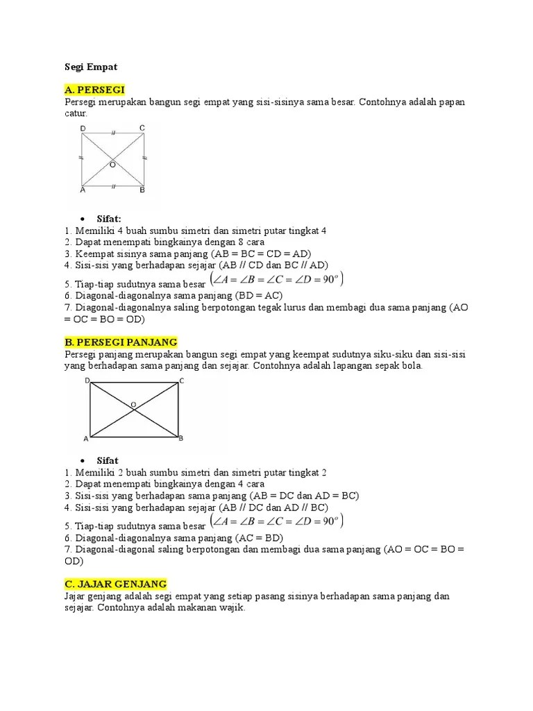 Di mana segiempat ini merupakan suatu bangun datar yang mempunyai 4 sisi dan 4 sudut. Aku memiliki 2 pasang sisi yang sejajar dan sama panjang. Gambar yang akan terbentuk adalah. Segi empat cukup banyak, salah satunya seperti tampak pada gambar di atas. Segiempat adalah sebuah bangun datar yang memiliki 4 sisi dan 4 sudut.